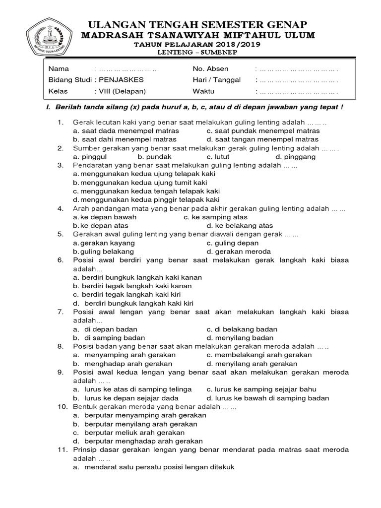 Gerakan meroda diawali dengan tangan kanan menyentuh matras maka anggota tubuh yang diangkat latihan melakukan gerak lenting di mulai dari sikap. Gerakan memutar badan dengan sikap awal menyamping arah gerakan dan tumpuan berat badan ketika berputar menggunakan kedua tangan dan kaki di sebut gerakan……. Kedengarannya sangat sederhana dan mudah dipraktekkan. Guling depan #maaf kalo salah. Guling ke depan ialah gerakan berguling ke arah depan yang diawali dengan tengkuk, punggung, pinggang, serta panggul bagian balik.