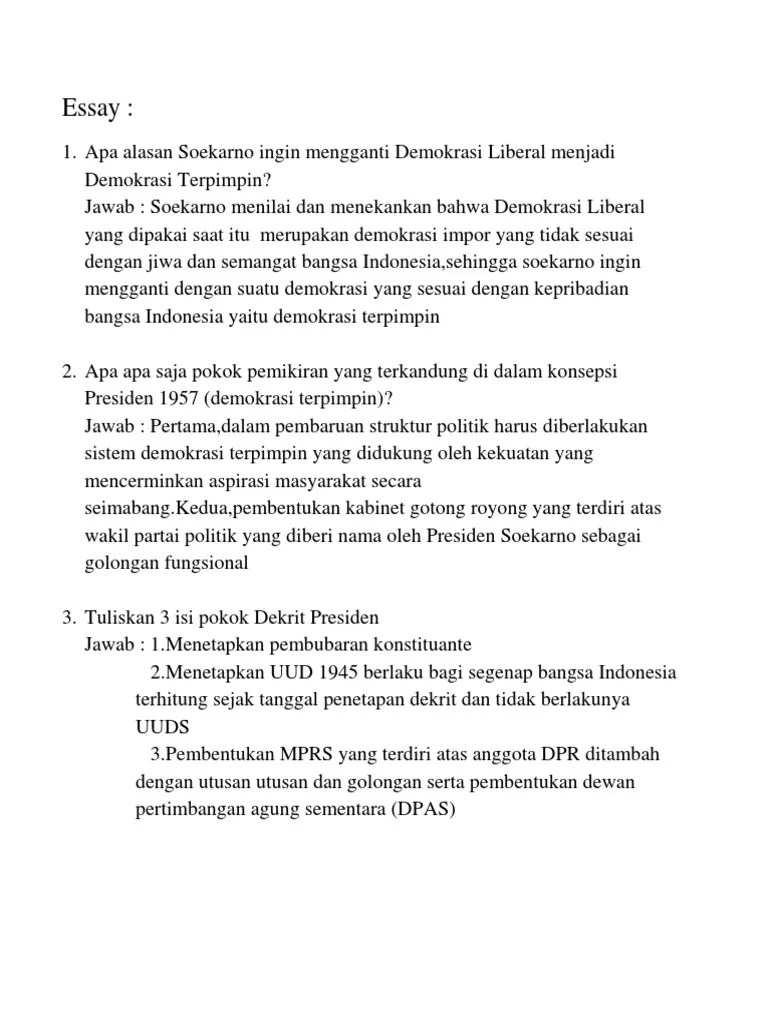 Soal Essay Pkn Tentang Demokrasi Beserta Jawabannya / 23 Soal Pilihan Ganda Jawabannya Sejarah Kelas 11 Bab 9 Akar Akar Demokrasi Di Indonesia Dan Perkembangannya Pada Masa Kini Sekolahmuonline Com Sekolahmuonline : Penegakan supremasi hukum dan demokrasi.